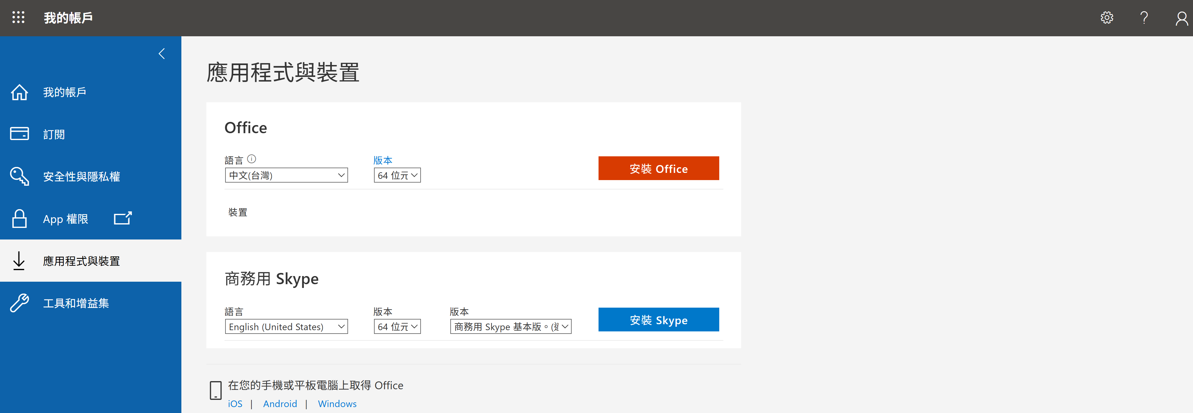 4. 安裝微軟Office 365應用軟體步驟如下: